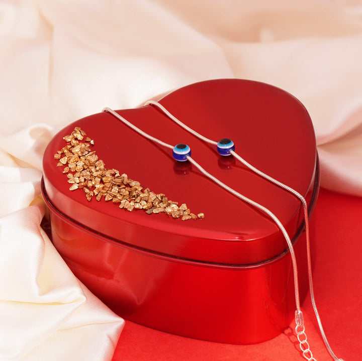 This Silver Moti Blue Evil Eye Charm Bracelet combines traditional symbolism with refined craftsmanship. Featuring lustrous silver beads and a striking blue evil eye charm, it...