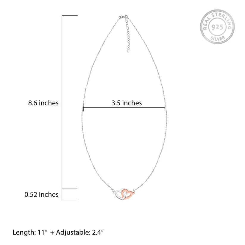 Elevate your elegance with this Silver Dual Tone Interlocked Heart Necklace, expertly crafted to symbolize unity and timeless love. The dual-tone design enhances its visual depth, making it a versatile accessory for both everyday wear and special occasions. Precision-crafted from high-quality silver, the interlocked hearts rest delicately to complement any neckline, offering a refined and meaningful addition to your jewelry collection.