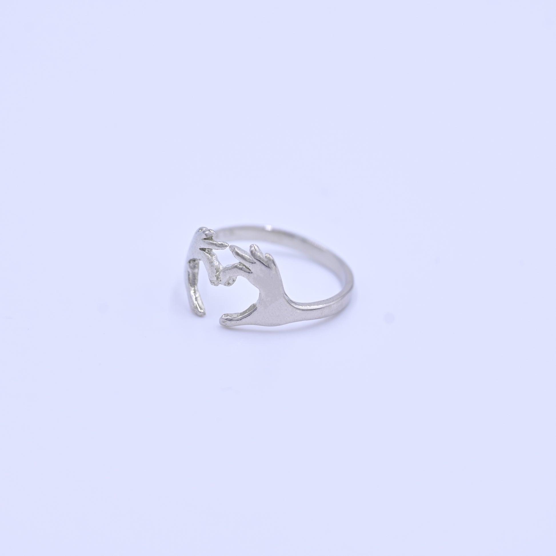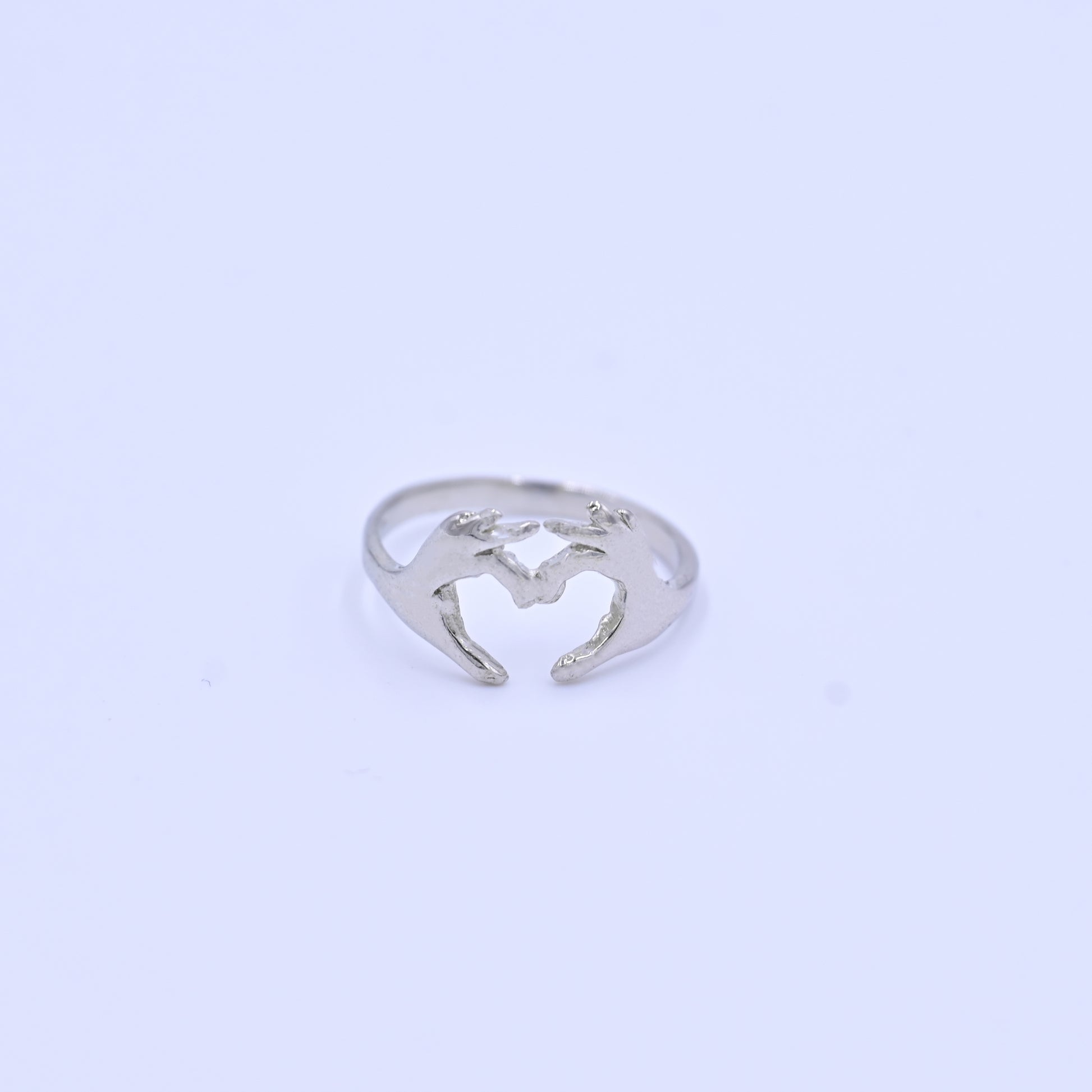 A unique and artistic 925 sterling silver ring featuring two delicate hands forming a heart shape. Symbolizing love and connection, this minimal yet meaningful design is perfect for daily wear or as a heartfelt gift.