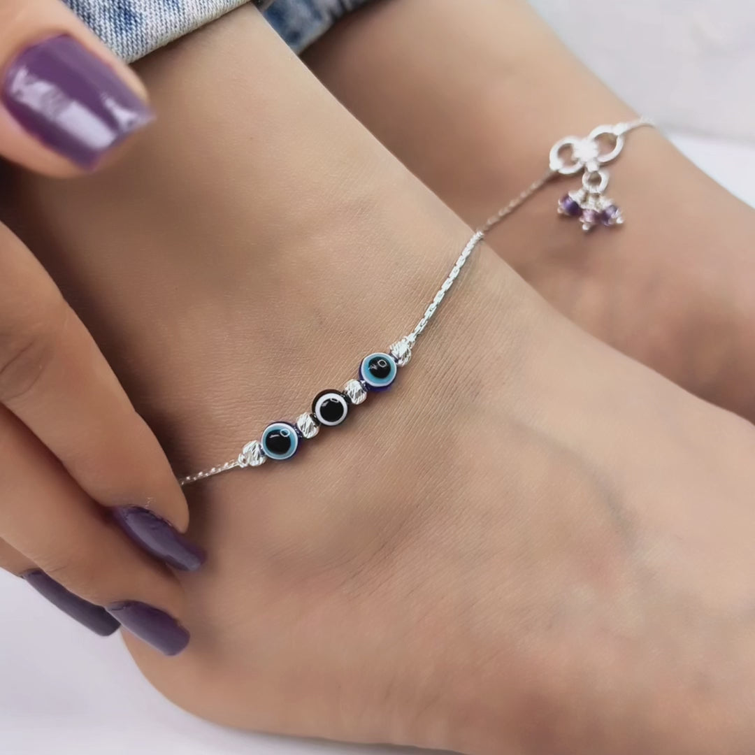 Crafted with precision, this Slim Silver Evil Eye Anklet combines elegant protection with minimalist design. The delicate silver chain features a distinctive evil eye charm, traditionally believed to ward off negative energy. Perfect for everyday wear, this anklet adds a subtle touch of sophistication while maintaining cultural significance. Adjustable length ensures comfortable fit for all.