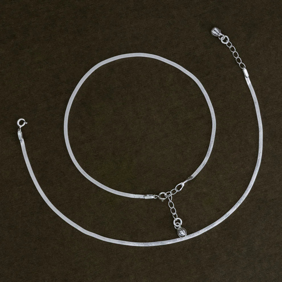 This stylish silver chain snake(anklet) payal light weight is crafted to add a subtle yet elegant charm to any girl's attire. Made from high-quality silver, it offers durability and a polished finish that complements both casual and traditional wear. Its delicate design ensures comfortable wear while enhancing the overall look with a graceful shimmer. Ideal for daily wear or special occasions, this payal blends timeless appeal with contemporary style.