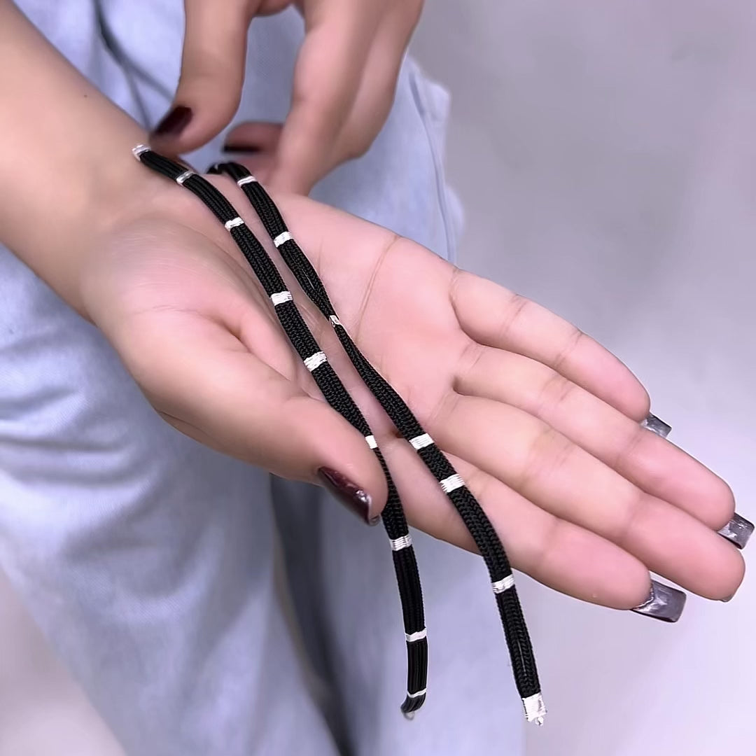 This elegant thread anklet features finely crafted pure silver beads, offering a subtle yet sophisticated accessory that complements any style. Lightweight and comfortable, it enhances your look while ensuring durability and timeless appeal. Perfect for both casual and traditional wear, this anklet reflects expert craftsmanship and quality materials.