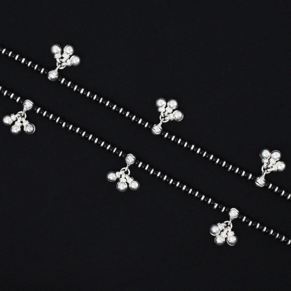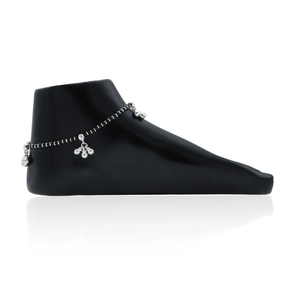 This traditional silver payal is adorned with black beads and ghungroo, adding a touch of elegance and tradition to your outfit. Handcrafted by skilled artisans, this payal is a perfect accessory for any occasion. Elevate your fashion game with this classic piece.